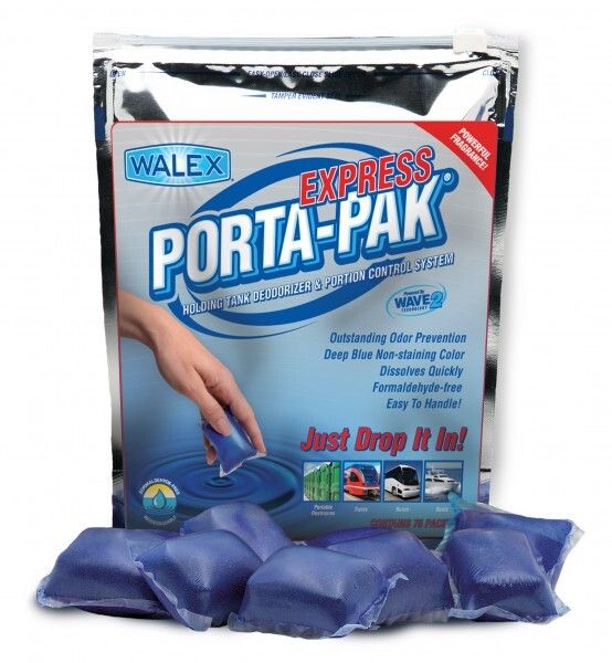 Walex Porta-Pak Express Blue 300pk combats unpleasant odours and rapidly breaks down paper and waste in your holding tank.