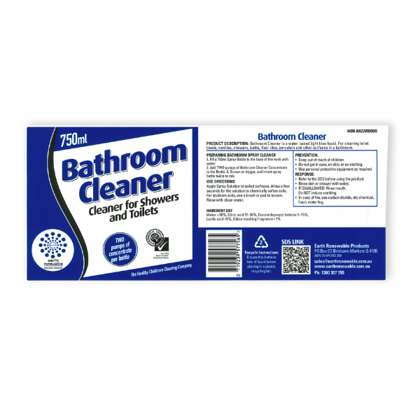 EARTH RENEWABLE BATHROOM CLEANER - LABEL