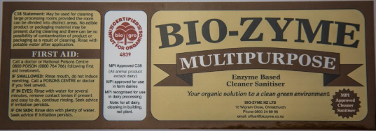 - BIO-ZYME MULTIPURPOSE BROWN BOTTLE LABEL