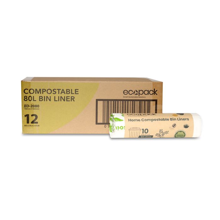These 80L compostable bin liners are made for extra-large home kitchen bins and commercial use.