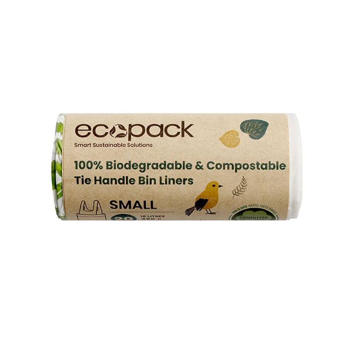 These 18L compostable bin liners are the ideal fit for your small bathroom, kitchen or office bins. They contain corn starch and are certified home and commercially compostable. Feature handles to make them easy to carry and extra microns for strength.