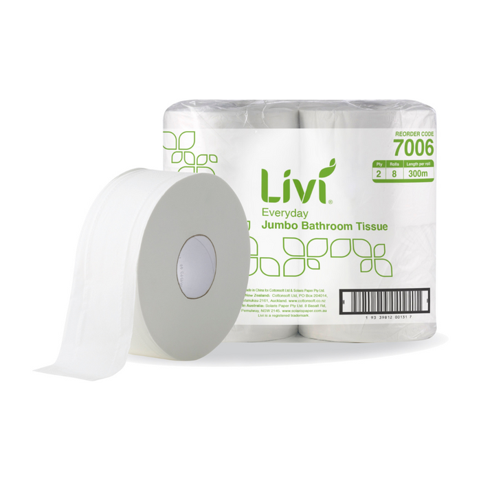 Livi Everyday #7006 2ply jumbo toilet tissue is part of a concise range for high volume areas. This product is biodegradable and safe for septic tanks. PEFC & ECNZ certified.